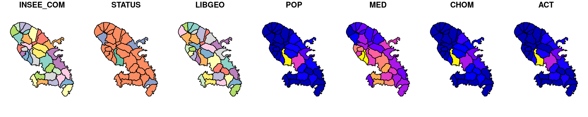 Les objets sf sont des data.frame dont l’une des colonnes contient des géométries. Format très pratique, les données et les géométries sont intrinsèquement liées dans un même objet.