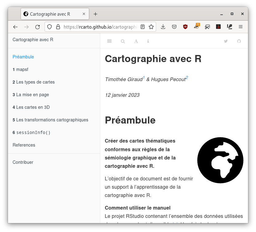 spatial, sgeostat, splancs, akima, geoR, spatstat, spdep, maptools.rgdal (Bivand et al., 2023), interface entre R et GDAL/PROJ4sp (Pebesma, 2018), classes et méthodes dédiées aux objets spatiaux, adoption rapidesp par ggplot2rgeos (Bivand et Rundel, 2023), interface entre R et GEOS.raster (Hijmans, 2023a), support des données rastersf (Pebesma, 2018), remplace sp, rgdal et rgeosstars (Pebesma et Bivand, 2023), remplace rasterterra (Hijmans, 2023b), remplace aussi raster